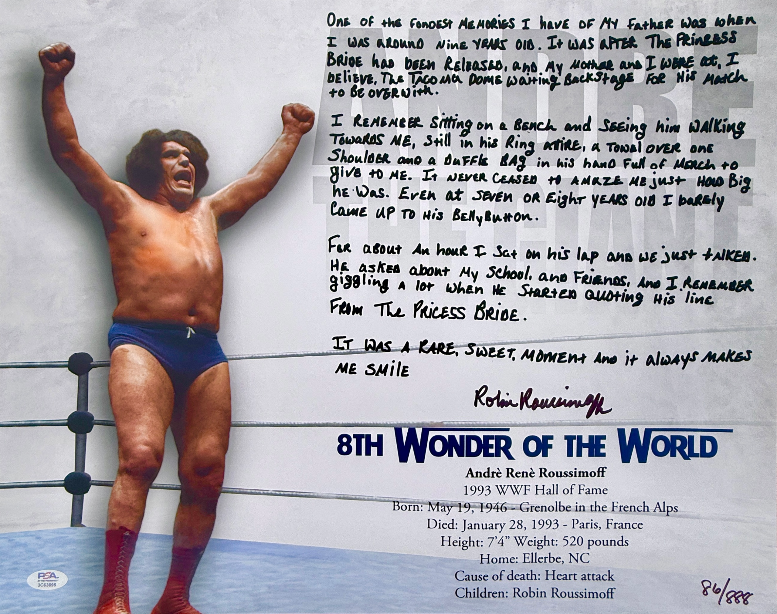 ANDRE THE GIANTS DAUGHTER SIGNED LARGE TRIBUTE PHOTO